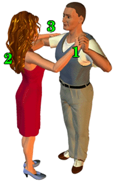 Ballroom Dance Tips: In a Ballroom dance (not Latin), the follower will be offset on the leader’s right, so her centre faces his shoulder.