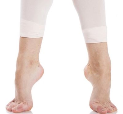 Then, weight is transferred to the balls of both feet toward a foot rise (ankles flexed, weight on the balls of the foot, knees staying at the same level from start to finish as you raise your heels).