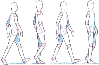 When you walk, you place one foot in front, using the heel and pushing off from the ball of the back foot.