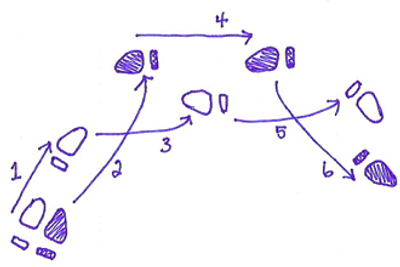 First, we must understand that a feather step originally curved gently to the right; forming the shape of a feather, hence its name.